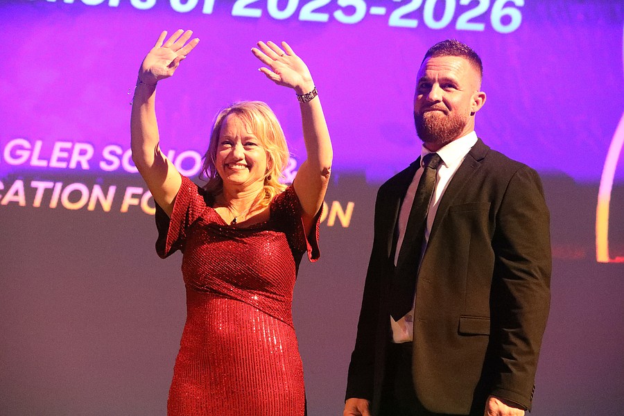 The Flagler County Teacher/Employee of Year gala is a high-energy affair. School administrators, mascots and cheer teams form a procession accompanying their teachers, employees and rookie teachers of the year to the stage as music blares from the speakers and the announcer screams the school and individual’s name. This year’s theme, was “Legacy by the Sea.”
