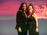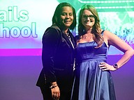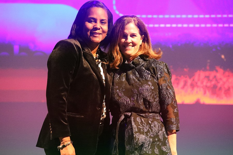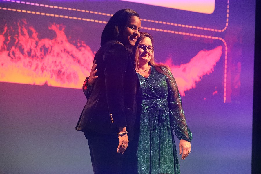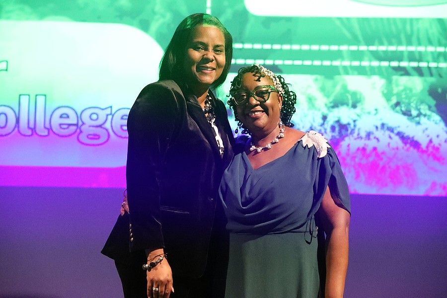 Flagler Technical College Teacher of the Year Adrienne Harvey with Superintendent LaShakia Moore. Photo by Brent Woronoff