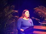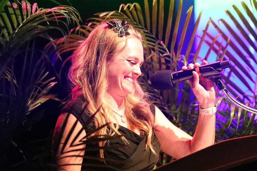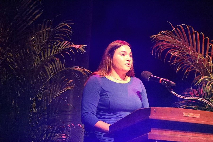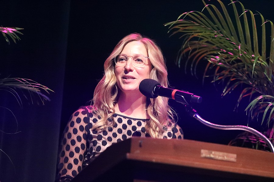 Brandy Anderson, Flagler Schools' 2025 Teacher of the Year, speaks at the gala. Photo by Brent Woronoff