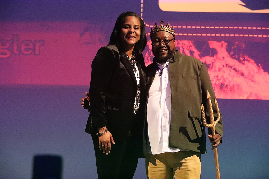 iFlagler Teacher of the Year Durand Brown poses with Superintendent LaShakia Moore. Photo by Brent Woronoff