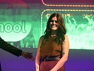 Rymfire Elementary School Rookie Teacher of the Year Michelle Lique walks to the stage. Photo by Brent Woronoff