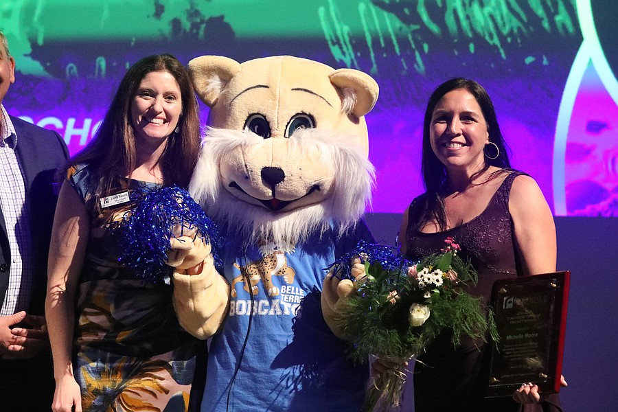 Belle Terre Elementary School Teacher of the Year Michelle Moore is introduced on stage. Photo by Brent Woronoff