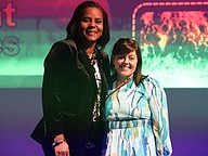 Student Services Teacher of the Year Michelle Yorio with Superintendent LaShakia Moore. Photo by Brent Woronoff