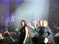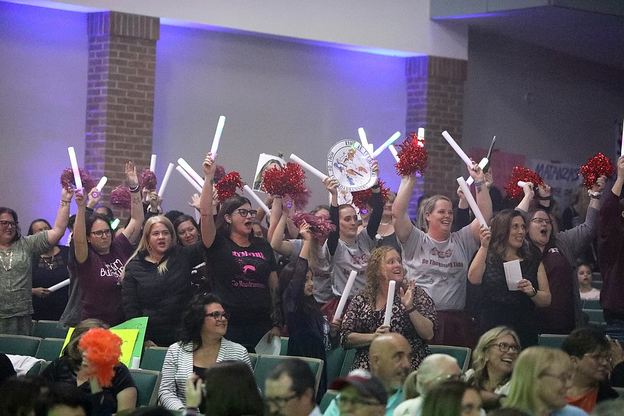 Belle Terre Elementary School Teacher of the Year Michelle Moore is escorted to the stage. Photo by Brent Woronoff