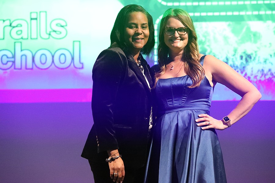 Rymfire Elementary School Teacher of the Year Hayley Gurley with Superintendent LaShakia Moore. Photo by Brent Woronoff