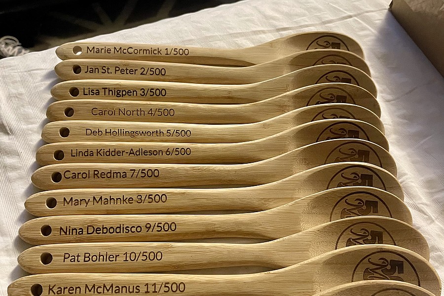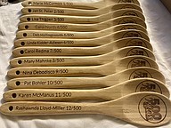 Everyone who becomes a mom — whether they are a mom, a dad or have no children — will receive a customized wooden spoon with the 500 Moms logo, their name and a number.
