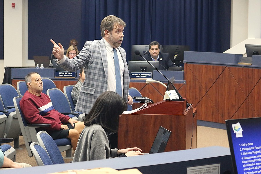 Flagler Beach Attorney Drew Smith talks to the Flagler County Commission about the Summertown development. Photo by Sierra Williams