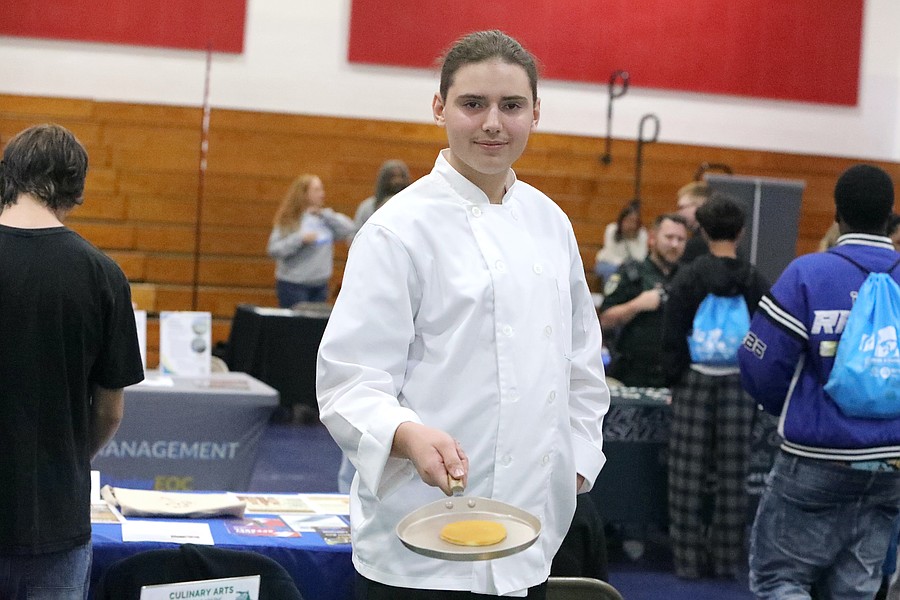 Tomasz Kicinski of Flagler Palm Coast High School's Culinary Arts program flips a pancake. Photo by Brent Woronoff