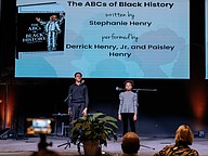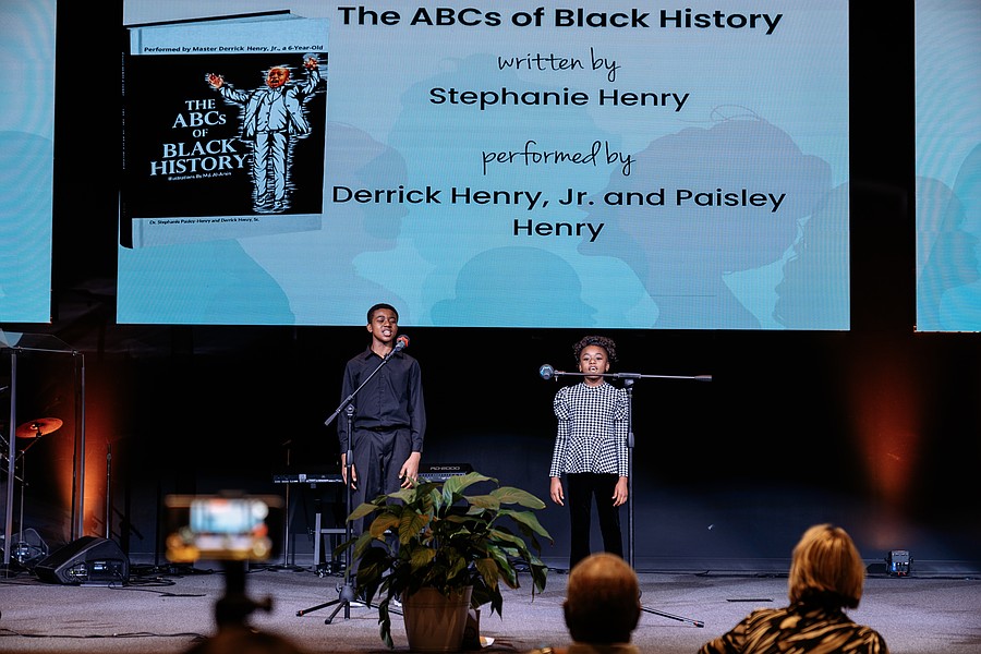 Derrick Henry Jr. and Paisley Henry perform the "ABCs of Black History," written by Stephanie Henry. Photo by Shauna McIntosh
