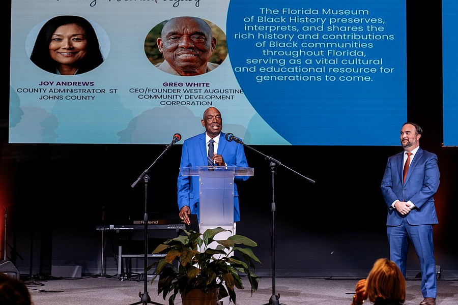 Joy Andrews, the St. Johns County administrator, and Greg White, the president and founder of the West Augustine Community Development Corporation, were honored on behalf of the many contributors who played a role in St. Johns County’s selection in June 2024 as the site for the Florida Museum of Black History.