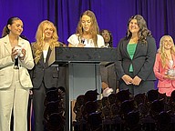 FPC's Ava Pascale (second from left) and Sofia Fretterd (fourth from left) were inducted as co-treasurers to the Florida Executive Board. Courtesy photo