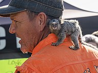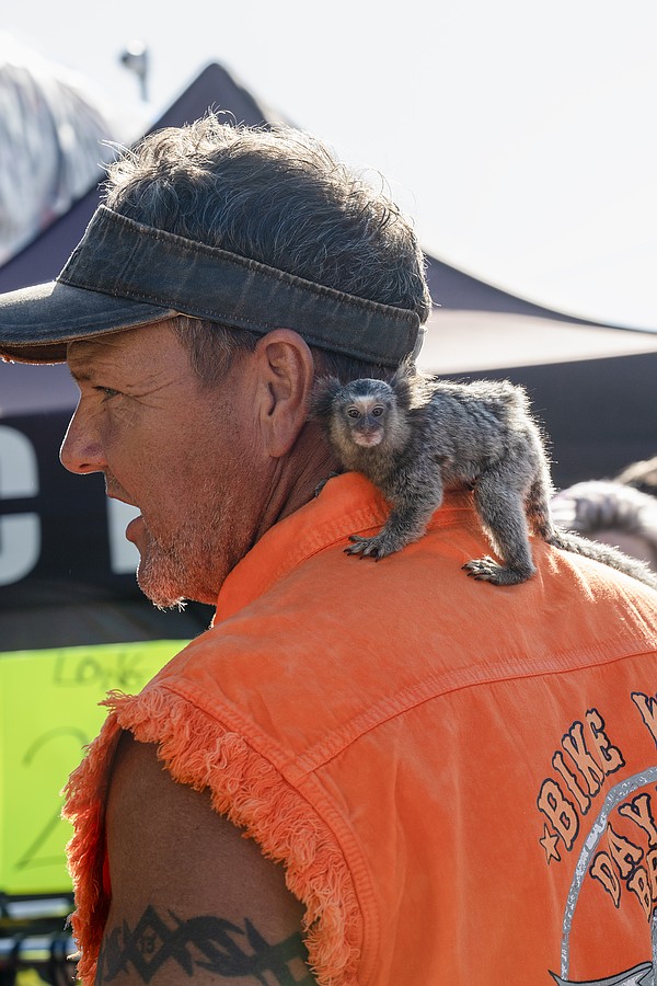 A 6-month old Marmoset clings to her human's collar as they stroll Main St. at the 85th annual Daytona Beach Bike Week on Saturday, Mar. 7. Photo by Michele Meyers