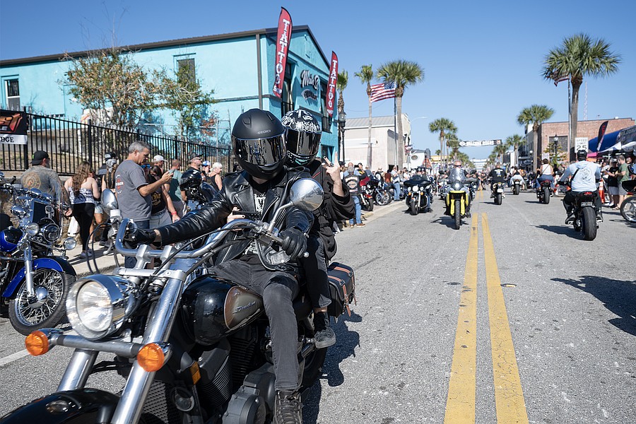 Bikers cruise Main St. at the 85th annual Daytona Beach Bike Week on Saturday, Mar. 7. Photo by Michele Meyers