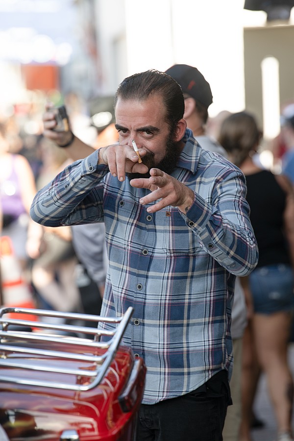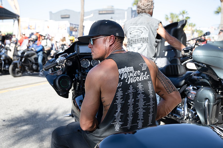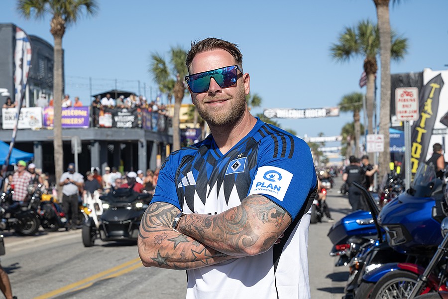 Hamburg, Germany resident and Harley-Davidson enthusiast Benjamin Gehrke hangs out on Main Street during the 85th annual Daytona Beach Bike Week on Saturday, Mar. 7. Photo by Michele Meyers