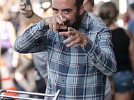 A musician hangs out on Main St. in cognito at the 85th annual Daytona Beach Bike Week on Saturday, Mar. 7. Photo by Michele Meyers