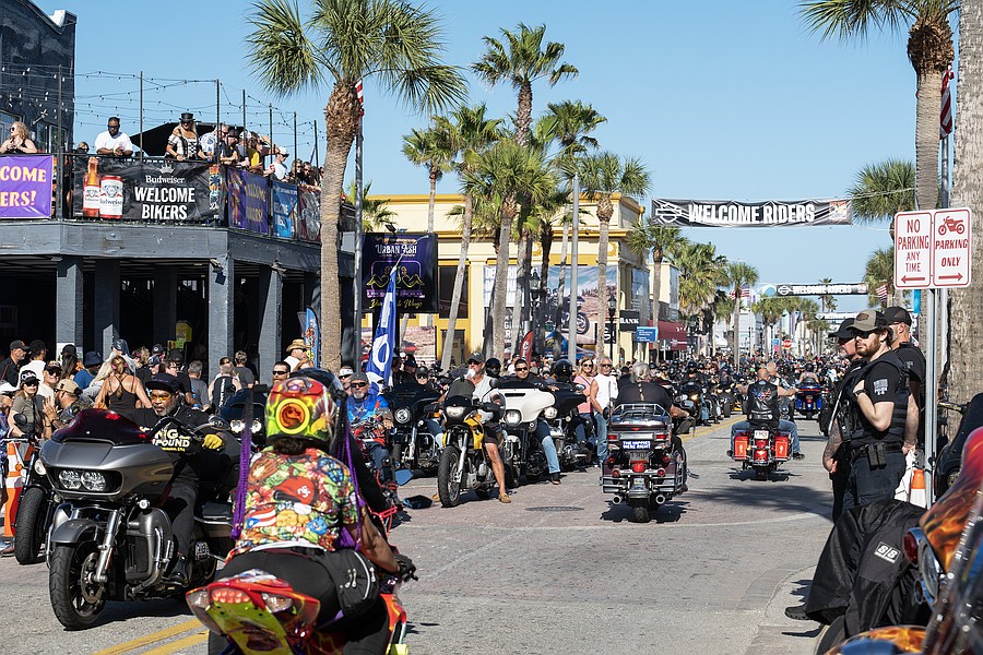 Choppers, sport bikes, trikes and even scooters cruised into Volusia County for the 85th annual Daytona Beach Bike Week bringing the bling, the leather and a party atmosphere.