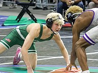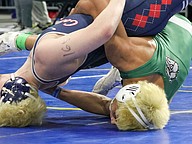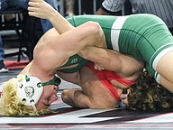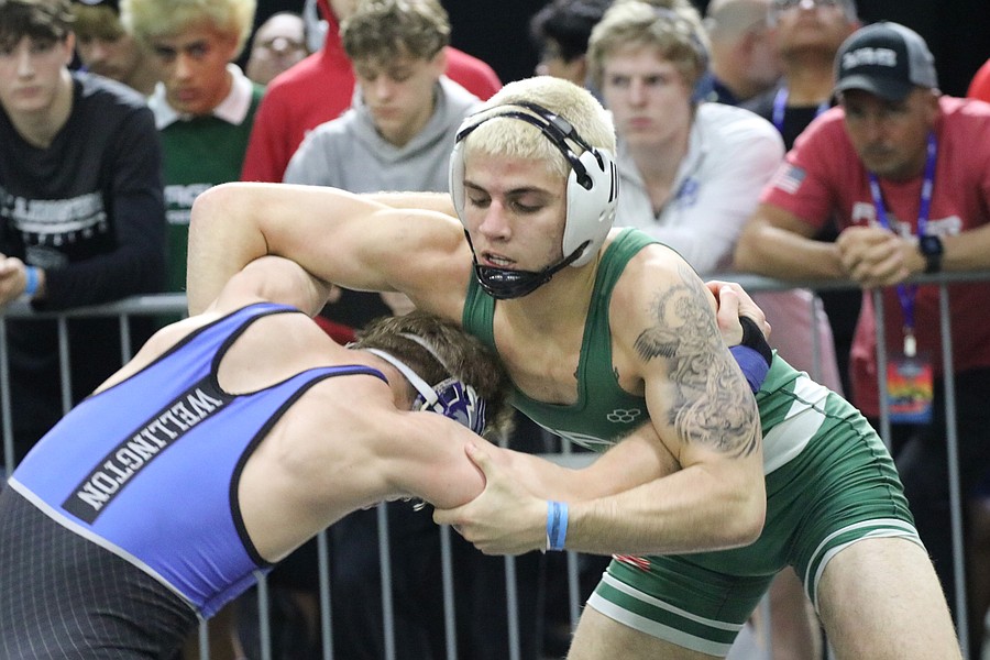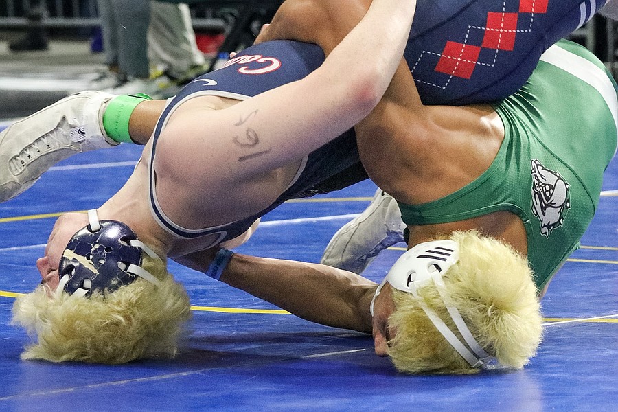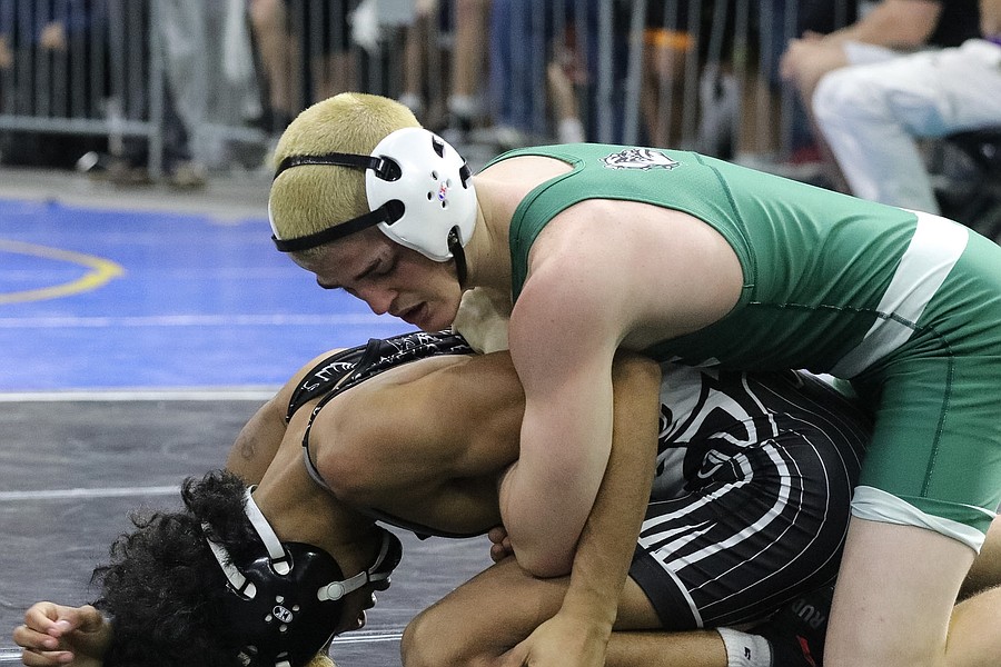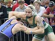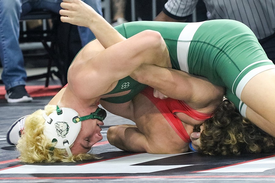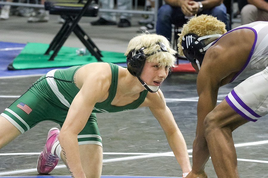 FPC freshman Jacob Hald (right) at the Class 3A boys state wrestling championships. Photo by Abe Mills