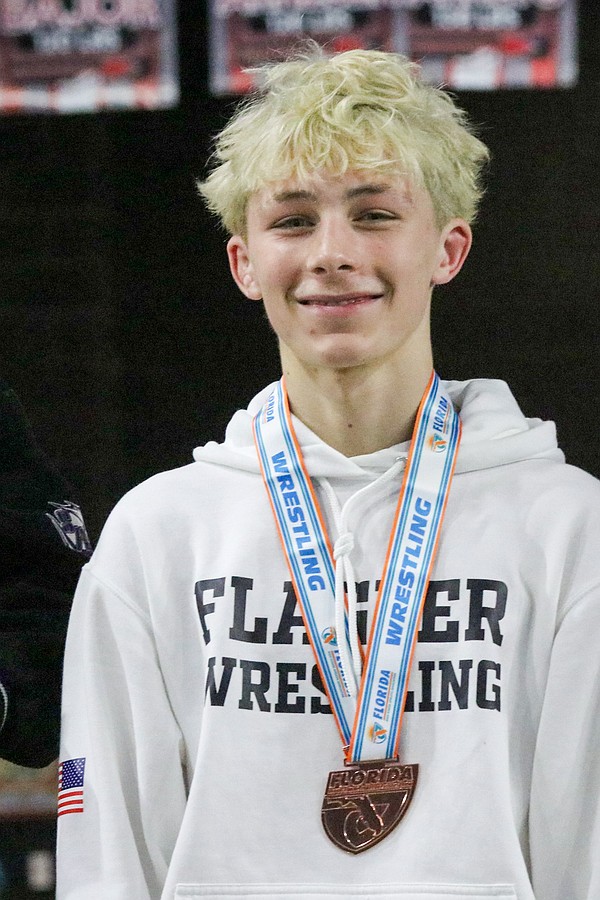 McLean, a sophomore, placed third at state for the third year in a row. Wrestling for St. Johns Country Day as an eighth grader in 2024, he placed third in Class 1A, and placed third for FPC in Class 3A last year at 113 pounds. On Friday, McLean lost to eventual champ Lazaro Soto of Southwest Miami in the 120-pound semifinals. On Saturday, McLean won with a late pin in the semifinals and a 9-3 decision in the third-place match.