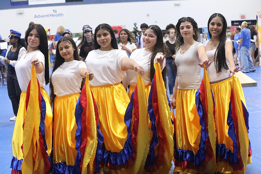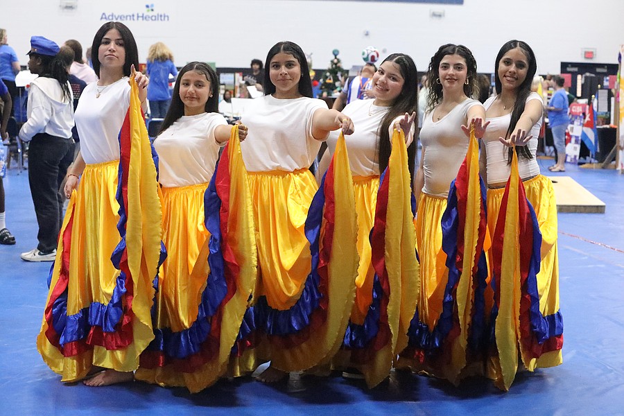 Matanzas High School AMIGOS Hispanic Club members danced at the Multicultural Festival: Yulianna Pimentel, Mariatny Gonzalez, Helen Ramos, Darly Marquez, Camila Contreras and Valentina Ponce. Photo by Brent Woronoff