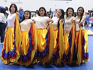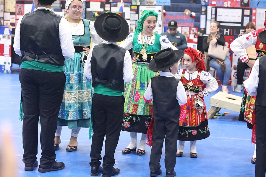 Members of Corações de Portugal Portuguese folklore dance group at the Matanzas High School Multicultural Festival. Photo by Brent Woronoff