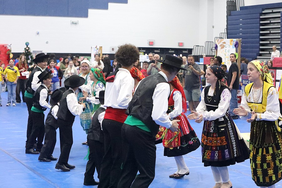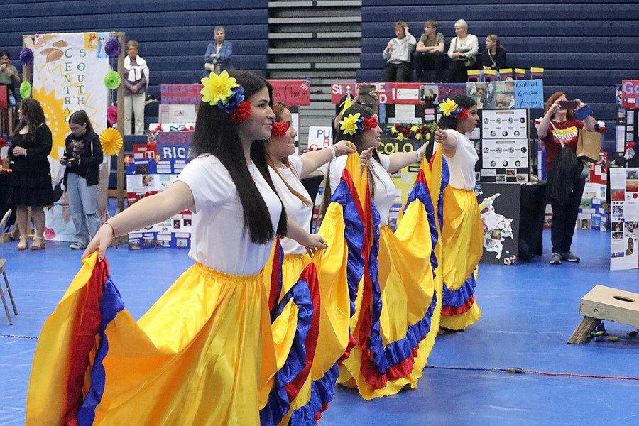 The school's culinary program provided international foods. Clubs and community organizations presented dance and music performances. Student displays represented countries in Africa, Asia, Europe and North and South America, including all 21 Spanish-speaking countries with students portraying a person from each nation.