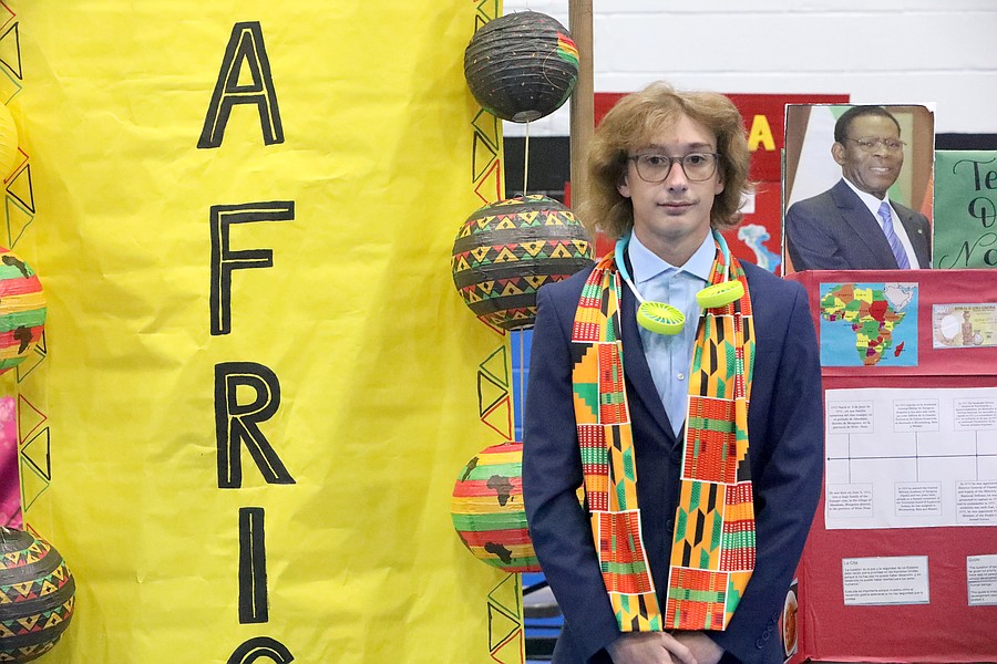 Jeremy Standish, a Spanish 3 Honors student, presented his project on Africa. Photo by Brent Woronoff