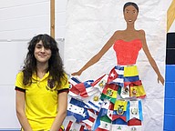 Noraly Dominguez with one of her artistic pieces at the Matanzas High School Multicultural Festival. Photo by Brent Woronoff