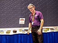 Bryce Hammond, Volusia County Schools Visual Arts Specialist, in front of gift bowls crafted by local high school students. Photo by Suzanne McCarthy