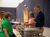 Volunteers serve guests soup during the Empty Bowls 2026 fundraiser. Photo by Suzanne McCarthy