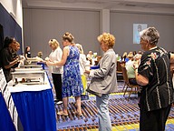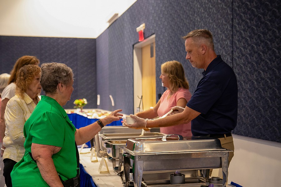 Friends from Daytona Beach and Ormond Beach enjoy soup during the Halifax Urban Ministries Empty Bowl 2026 fundraiser. Photo by Suzanne McCarthy