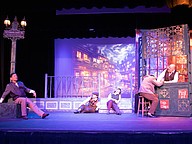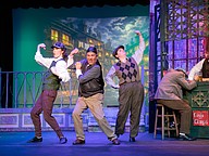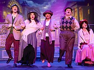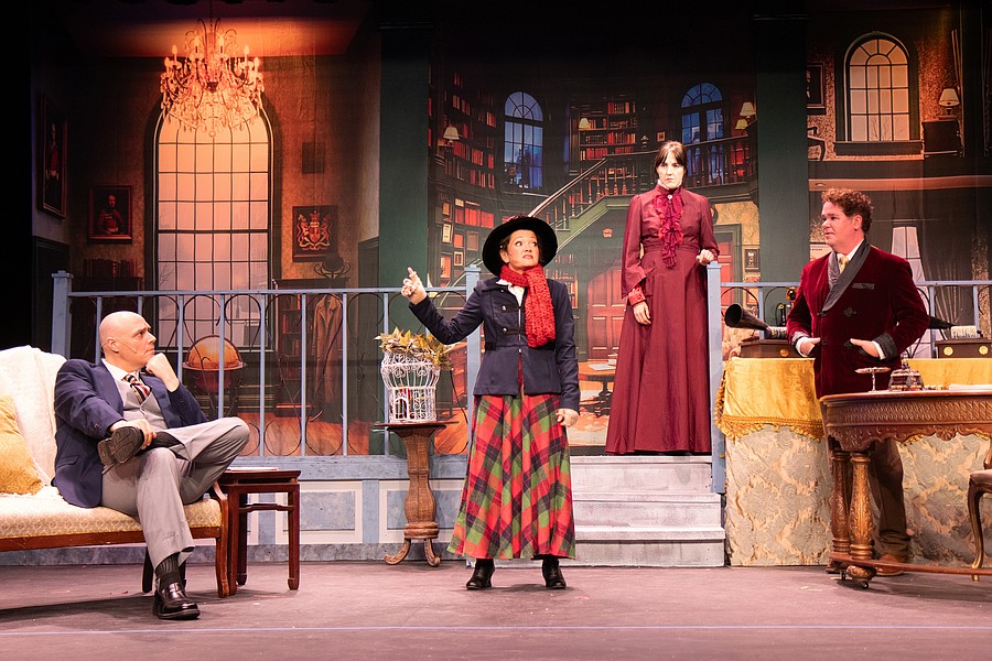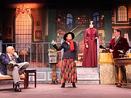 Timothy Akers, Danny Crile, Curt Knupp, and Laura Buckley during dress rehearsal for "My Fair Lady." Photo by Suzanne McCarthy