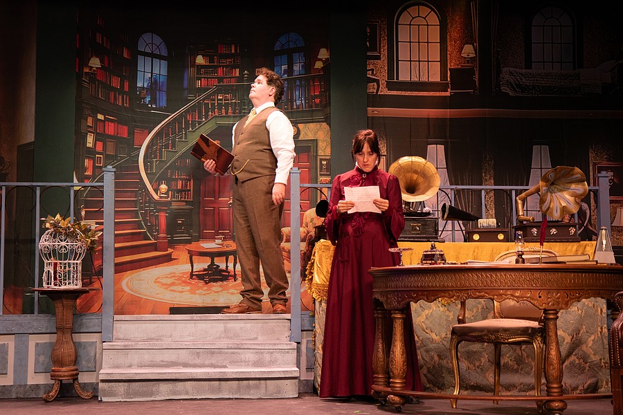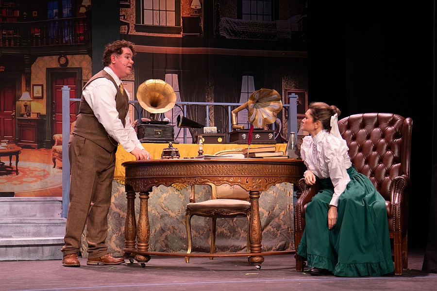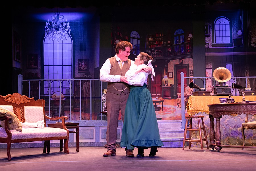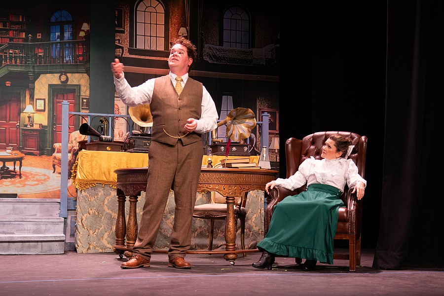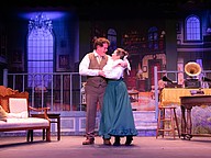 Curt Knupp as Henry Higgins and Chelsea Conrad as Eliza Doolittle during dress rehearsal for "My Fair Lady." Photo by Suzanne McCarthy
