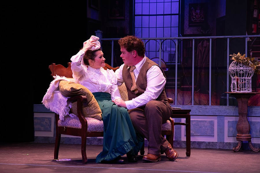 Timothy Akers as Colonel Pickering and Kathy Thompson as Mrs. Higgins during dress rehearsal for "My Fair Lady." Photo by Suzanne McCarthy