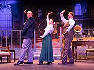 Timothy Akers, Chelsea Conrad and Curt Knupp rehearse a musical number for "My Fair Lady." Photo by Suzanne McCarthy