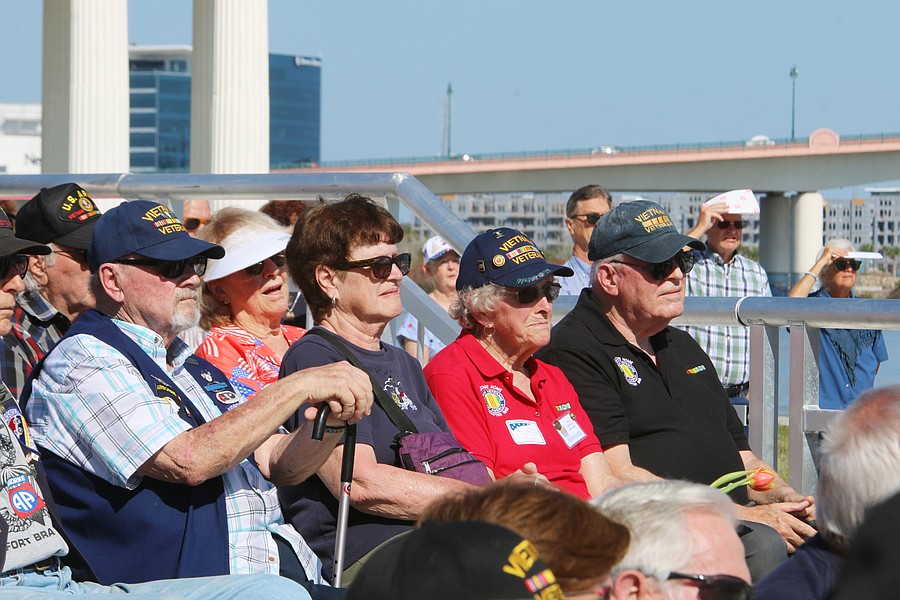 Veterans stand for recognitions during the Vietnam Memorial Wall unveiling ceremony at Veterans Memorial Plaza on Friday, March 27. Photo by Jarleene Almenas
