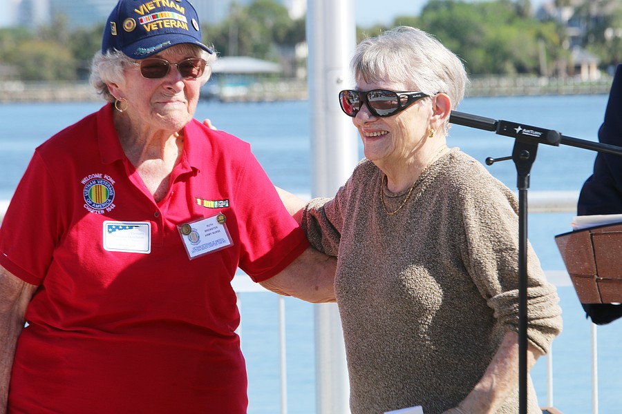 Nurses Ruth Brewster and Boris Jones-Pilcher are recognized during the ceremony. Brewster was an Army nurse during the Vietnam War. Jones-Pilcher took care of many Vietnam veterans during her nursing career. Photo by Jarleene Almenas