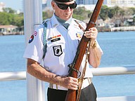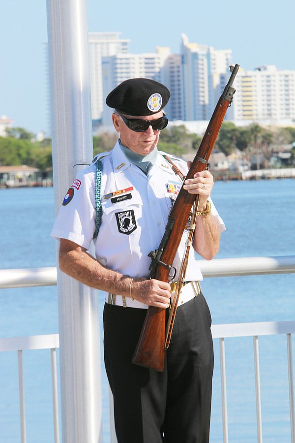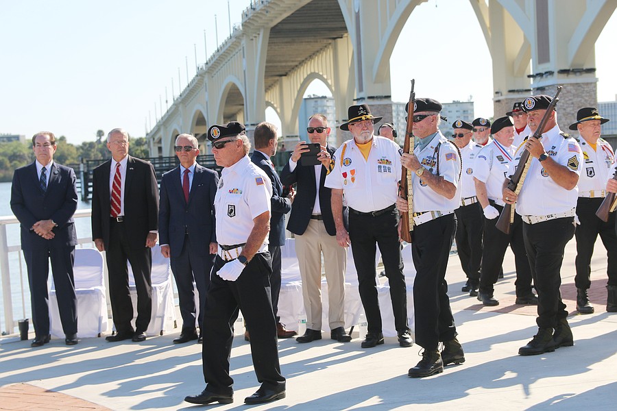 The Vietnam Veterans of America Daytona Beach Chapter 1048 honor guard take part in the unveiling ceremony at Veterans Memorial Plaza on Friday, March 27. Photo by Jarleene Almenas