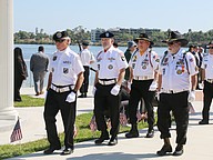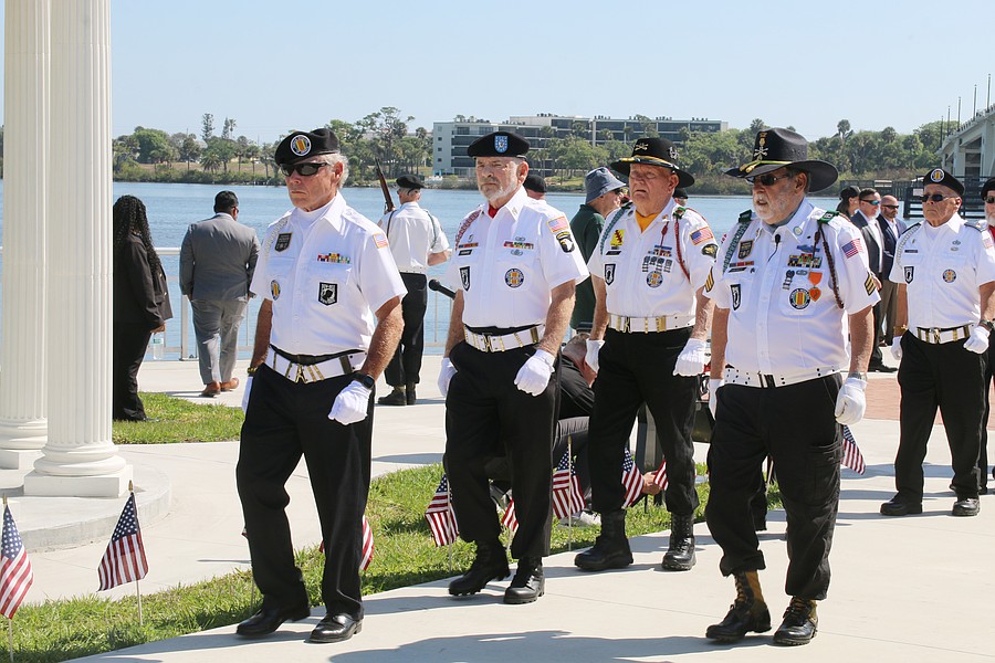 The Vietnam Veterans of America Daytona Beach Chapter 1048 honor guard march toward the memorial on Friday, March 27. Photo by Jarleene Almenas