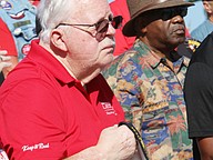 Denim Warren looks back at Gen. James Hartsell, executive director of the Florida Department of Veterans Affairs, as he walks away during the Vietnam Memorial Wall unveiling ceremony at Veterans Memorial Plaza on Friday, March 27. Photo by Jarleene Almenas