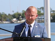 Volusia County Councilman Jake Johansson speaks during the Vietnam Memorial Wall unveiling ceremony at Veterans Memorial Plaza on Friday, March 27. Photo by Jarleene Almenas