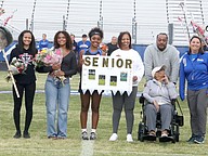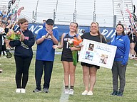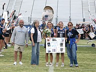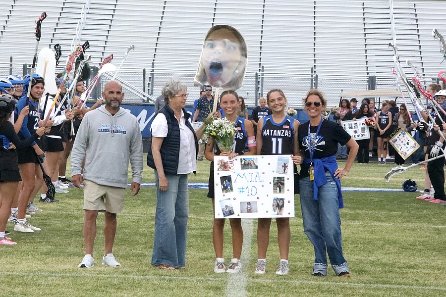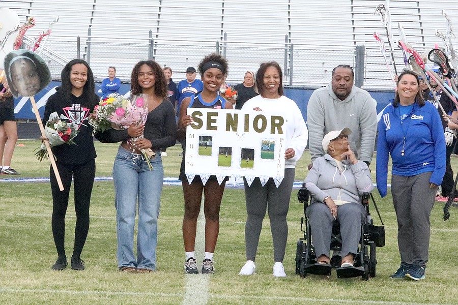 Matanzas senior Paityn Lawrence is honored with her family and girls lacrosse coach Brandie Alred. Photo by Brent Woronoff