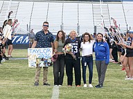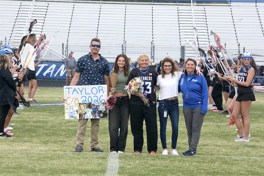 Matanzas senior Taylor Basiger is honored with her family and girls lacrosse coach Brandie Alred. Photo by Brent Woronoff