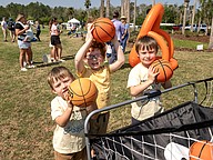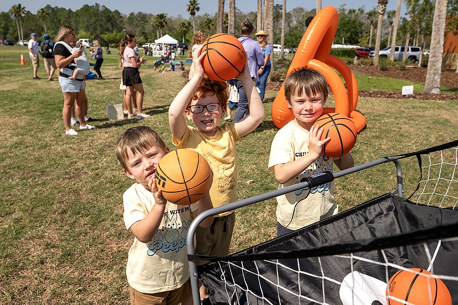 Leo, Noah and Maddox shoot basketballs at Egg’Stravaganza. Photo by Shauna McIntosh