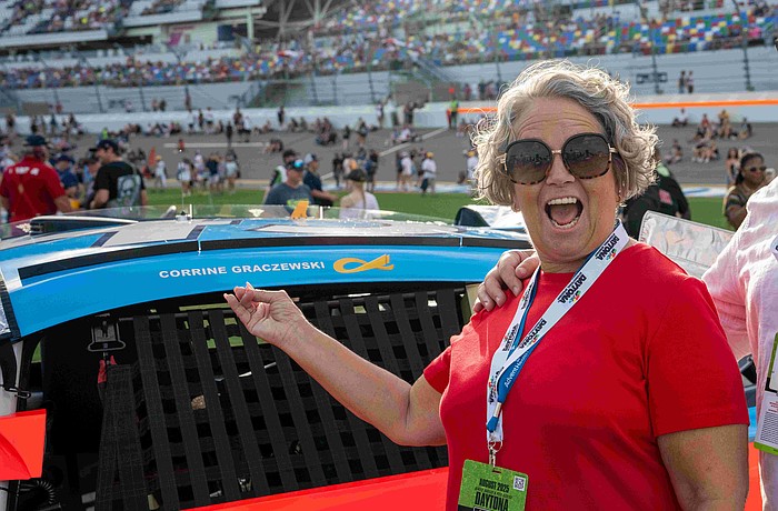 Corrine Graczewski was the first in Volusia and Flagler counties to receive a new cancer treatment — and then saw her name race around Daytona International Speedway.
